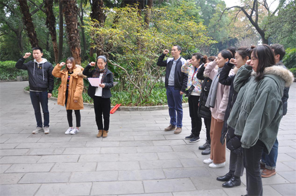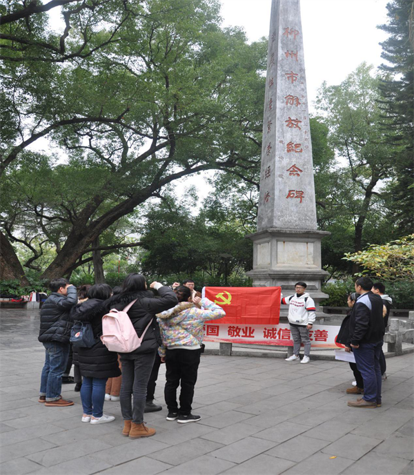 写生活动进行之余,全体成员来到了位于柳候公园内的“柳州市解放纪念碑”前进行了党课集中培训,重温党的光辉历史,接受革命传统教育。本次党课由支部书记吴建印老师亲自讲授,对党员的权利和义务、为什么要成为一名党员做了讲解,要求新党员端正入党动机、老党员不忘初心;以实际行动实现自己的人生理想,让自己融入到社会主流意识中。打铁还需自身硬,同志们怀着无限的敬意听完了此次党课,纷纷表示在今后的学习生活中要以一名合格党员的标准要求自己。之后,支部组织委员梁瑾瑾老师带领新党员在解放纪念碑下举行了入党宣誓仪式,老党员们一起重温了入党誓词。