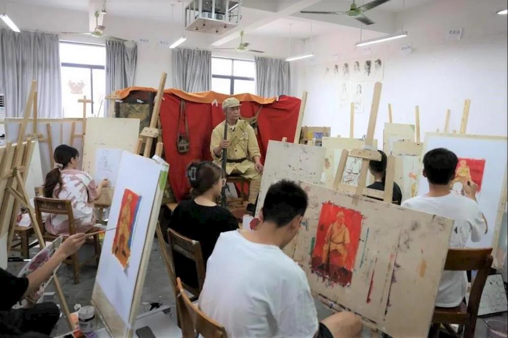 公司党委重视学院课程思政教学,在本次课程教学前,进行大量研究调研,前往广西电影制片厂,进行党史素材考察以及相关服装、道具租借。并与公司基础教学部,共同进行课程研究、设计,在公司各基础部班级团支部,将红色教育与学院专业课程进行有机结合,将红色革命历史教育引进课堂,专业教师上课前为员工讲述相关红军、人民志愿军的革命历史,在人物写生实践过程中,加深对红色历史、英雄人物事迹的感悟和理解。课堂上,教师们生动讲解,员工们学思践悟,用自己的专业理解,去描绘好“党的历史”,使各基础部班级团支部在专业实践中进行了一次生动的党史学习教育。
