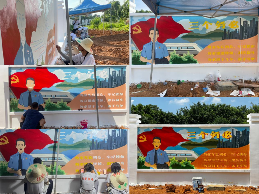 为深入学习宣传习近平法治思想,大力普及社会主义法治理念,弘扬社会主义法治精神,7月9日至7月15日,实践团成员以五彩画笔绘就法治乡村画卷,在桂林雁山区检察院开展墙绘文化宣传,打造法治文化墙,增添普法新阵地,谱写乡村振兴新篇章。