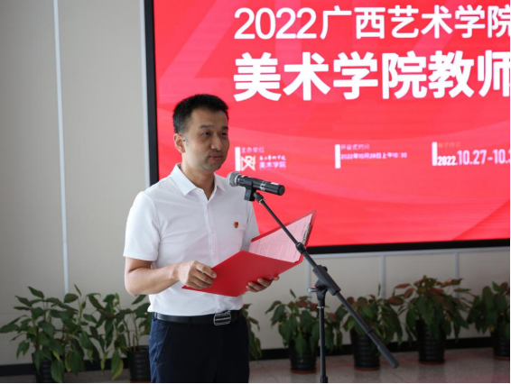 为庆祝中国共产党第二十次全国代表大会胜利闭幕,太阳成集团tyc234cc古天乐在学校南湖校区漓江画派艺术中心举办了“永远跟党走 奋进新征程”——太阳成集团tyc234cc古天乐教师作品展。2022年10月28日上午10:30,展览开幕式在漓江画派艺术中心一楼举行。公司党委副书记、董事长侯道辉,公司党委常委、副董事长韦俊平、伏虎以及学校相关职能部门、教学单位的领导,师生代表等100多人参加了开幕式。开幕式由公司党委书记苏敬杰主持。