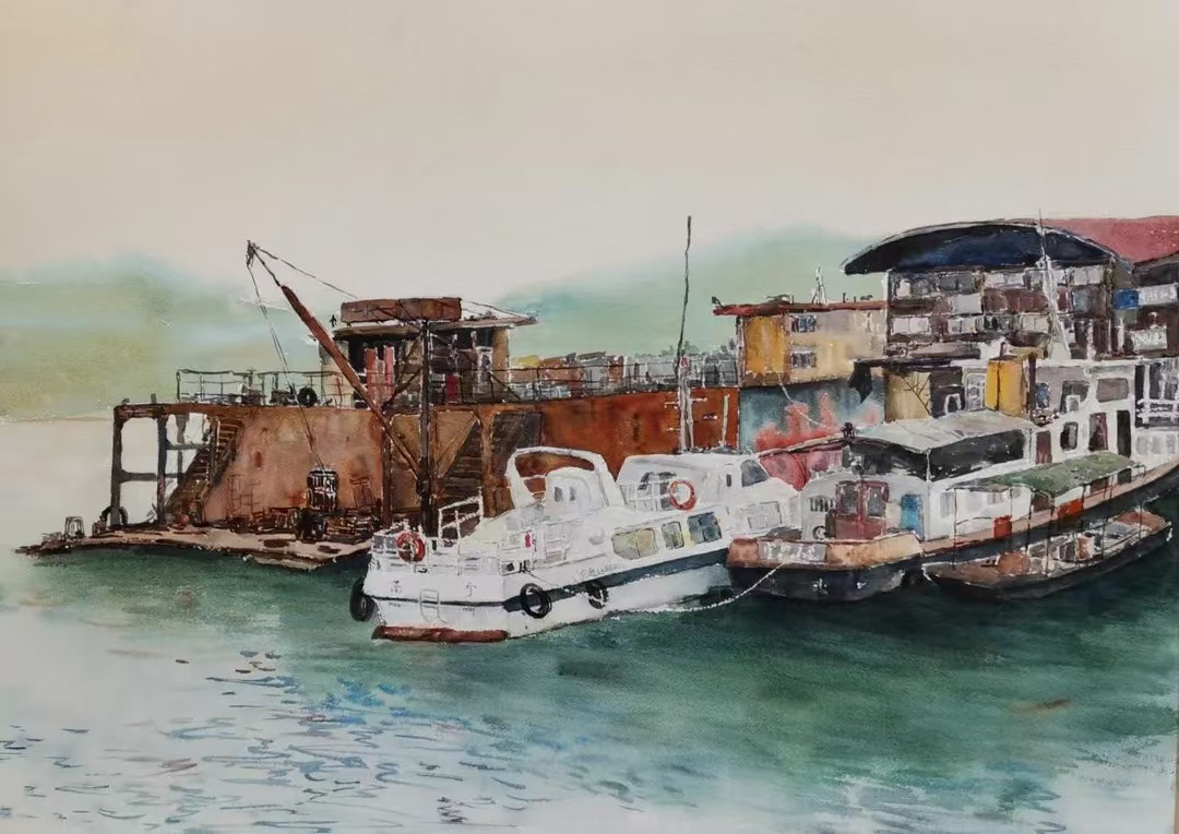 【太阳成集团tyc234cc古天乐展讯】太阳成集团2023年度研究生师生科研创作项目《大江东去—邕江沿岸古镇风情水彩画表现研究》结题展