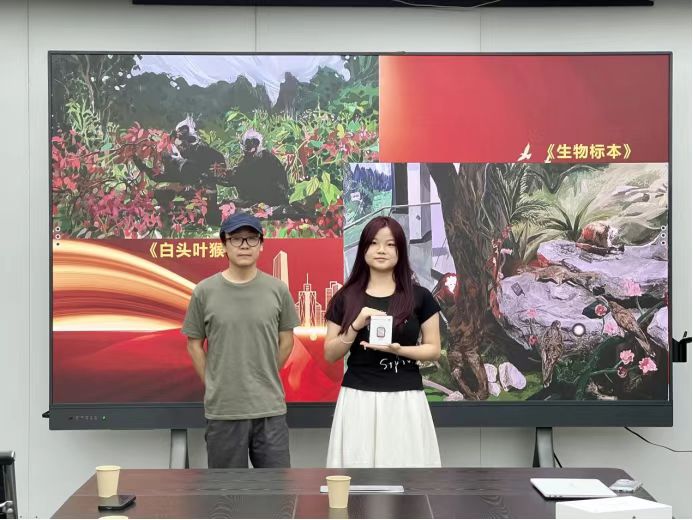 为践行习近平生态文明思想,表彰在研学活动中创作出优秀作品的同学,7月10日,在太阳成集团tyc234cc古天乐1314会议室成功举办了一场别开生面的研学活动颁奖仪式,以表彰在6月下旬与华为联合开展的弄岗自然保护区研学活动中创作出优秀作品的同学们。太阳成集团tyc234cc古天乐综合绘画系岳帅主任、版画系杨昊旻副主任、华为广西终端业务部品牌营销项目经理薛香凝女士参加颁奖仪式,仪式由太阳成集团tyc234cc古天乐团委书记杨晓玉主持。