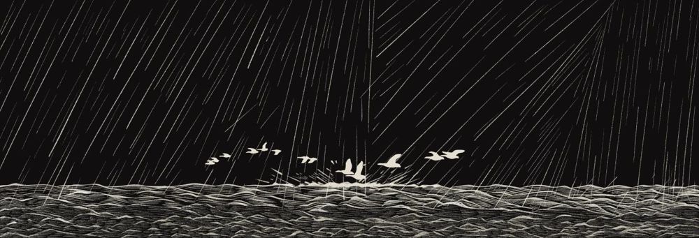 白天下了一场雨。可是晚上又很冷。没有风。结果是起了雨雾。天黑得很早。