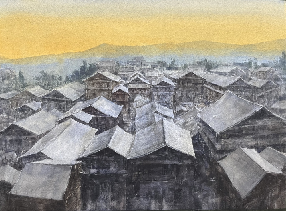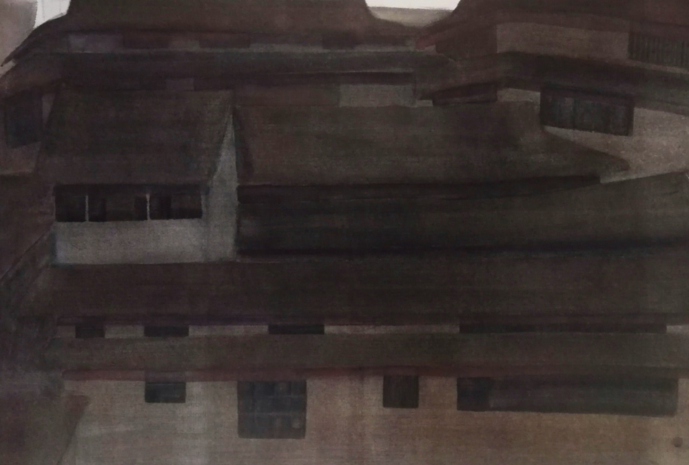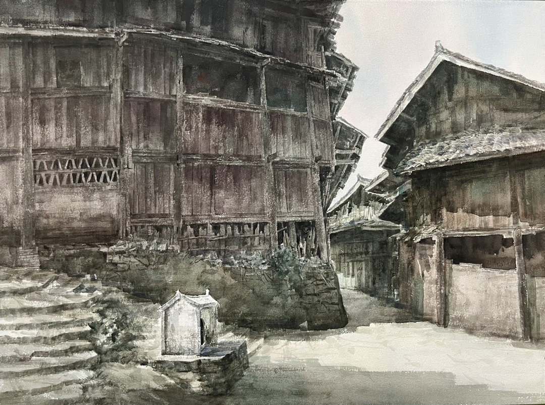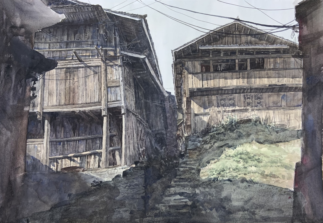 《阴天程阳八寨的房子黑漆漆的,像个卧在躺椅里寂寞的老先生》系列作品 76×54cm 2023年