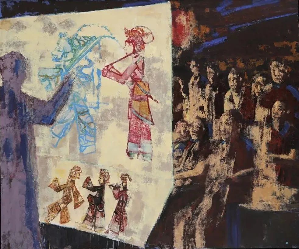 毕业创作《光影浮生》系列主要围绕皮影戏的表演,幕后表演者手中皮影进行虚实变化、快速舞动,三尺生绡,确映人世万千。皮影戏又称灯影戏,光线在画面中作为画面的主要表现,强化画面气氛。以皮影戏的台前幕后为创作角度,表现不同人物之间的状态。皮影作为一个元素,更多的是在画面的表现性和氛围的突出。